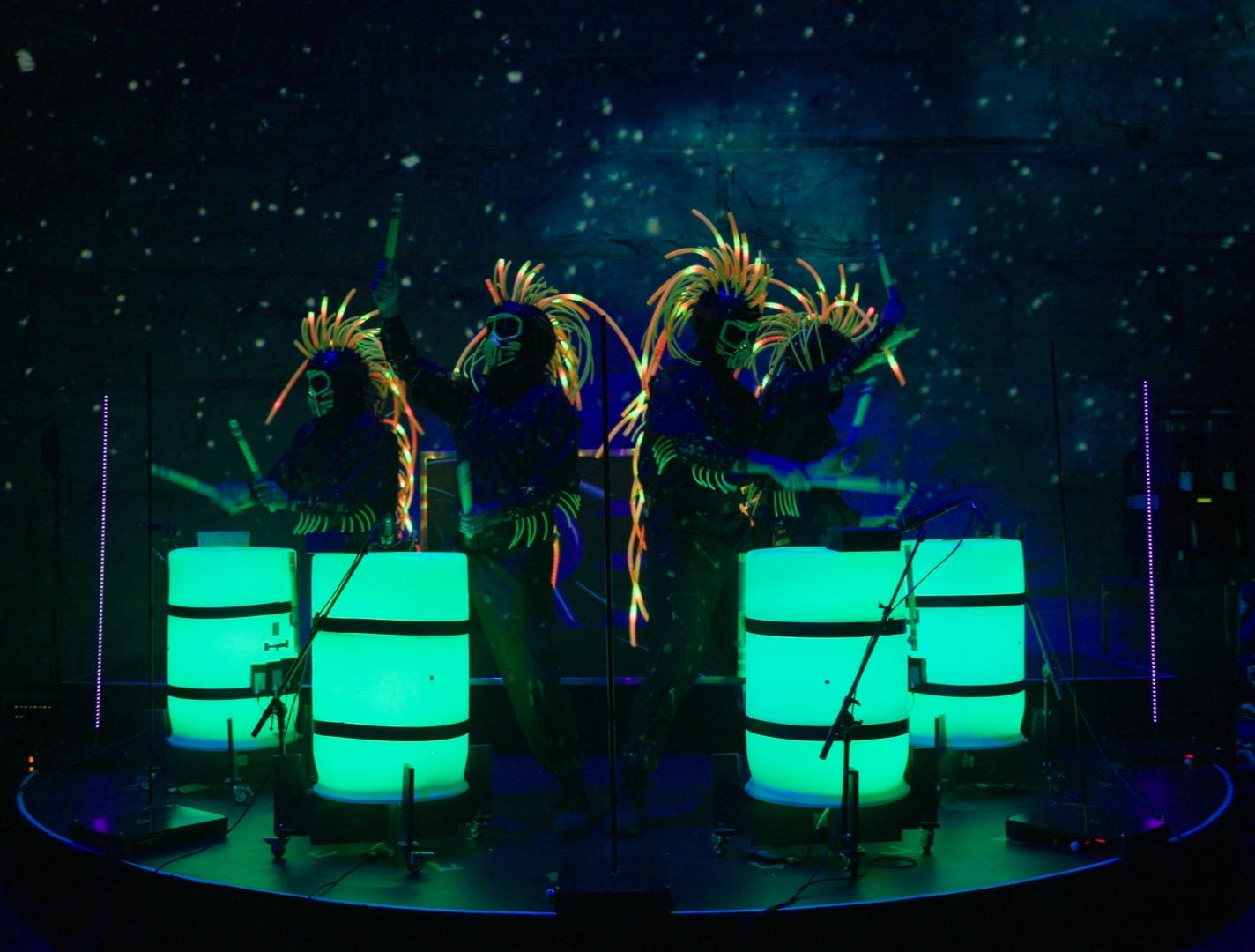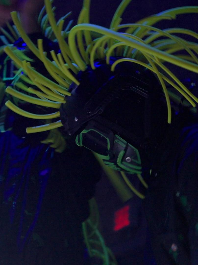 - Fully programmable UV/LED costumes for an intense visual impact.