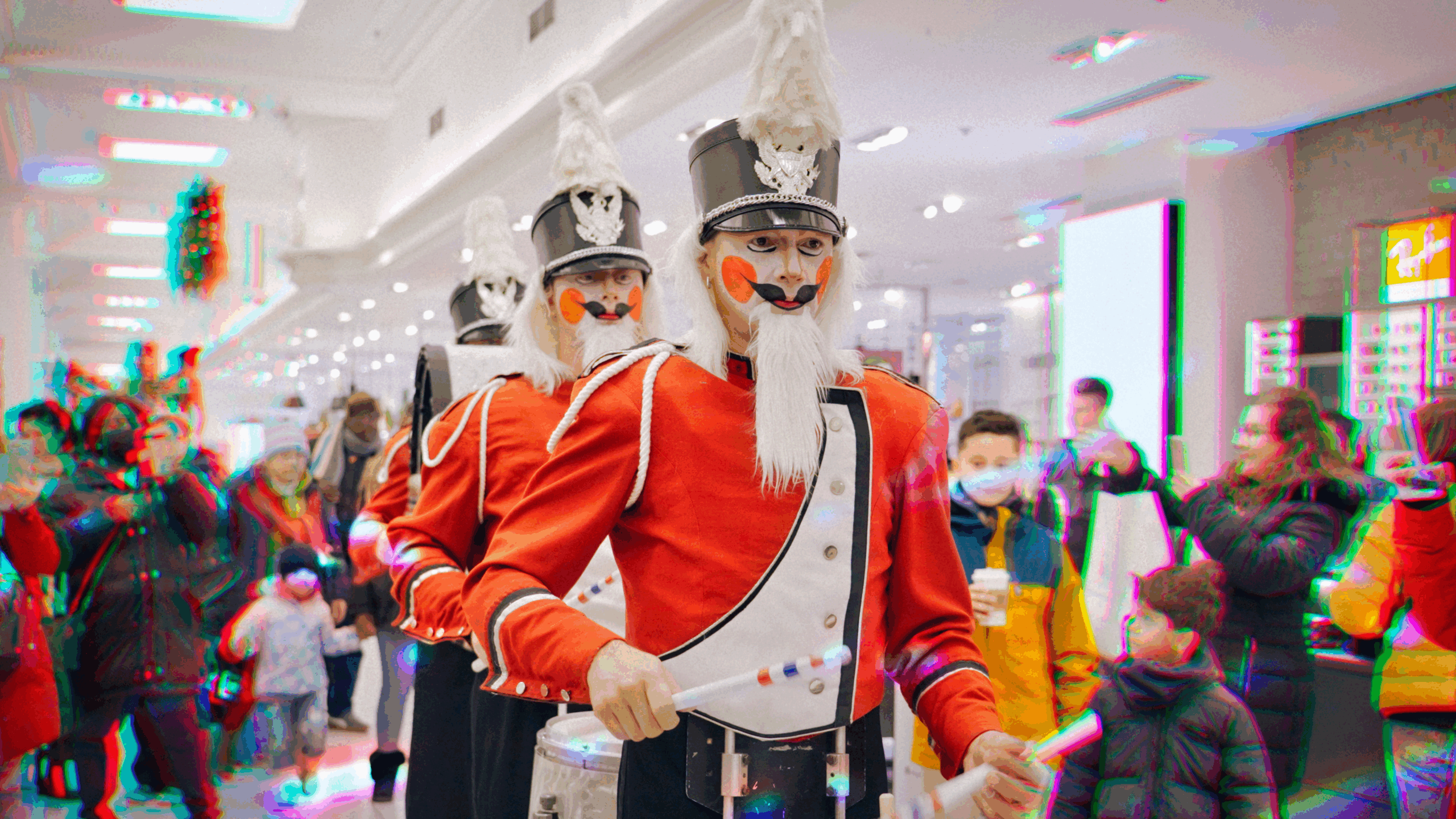 Mobile performances that interact directly with the crowd, spreading rhythm and holiday magic across your event.